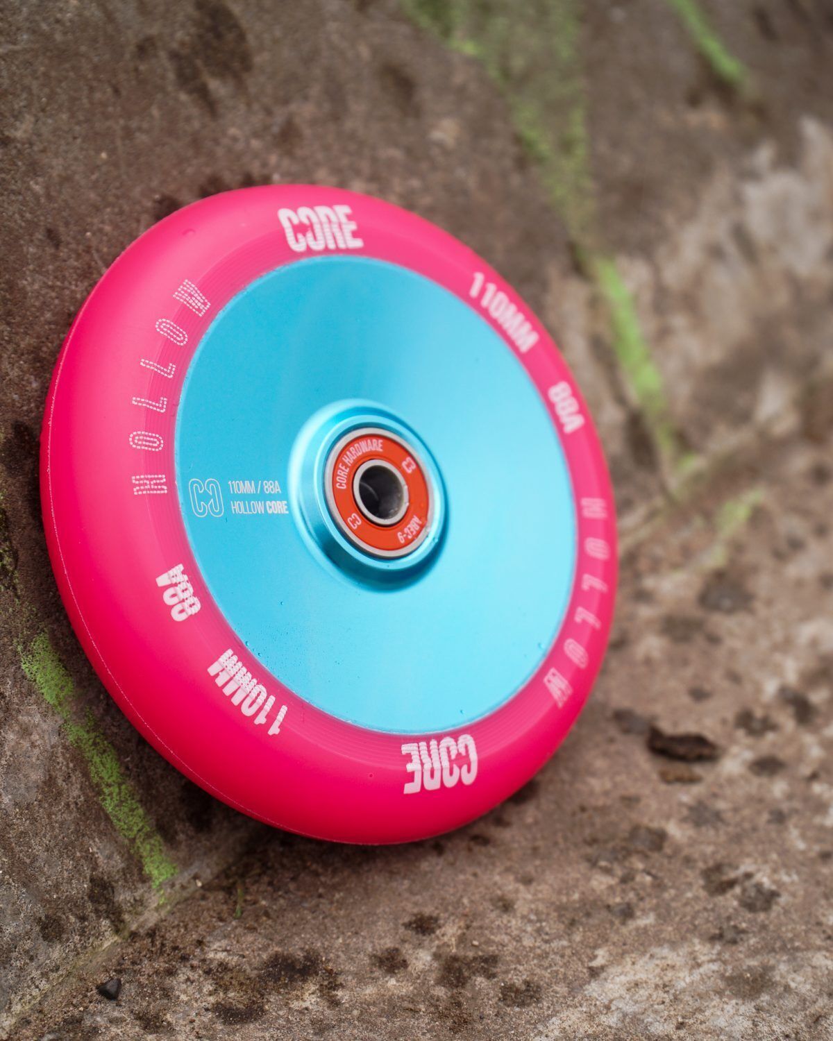 CORE Hollow Core Stunt Scooter Wheels are hugely popular with riders looking to reduce the weight of their scooter. The wheel has a hollow centre instead of a traditional solid centre without compromising on strength. The CORE Wheels come in a super grippy 88a compound which is perfect for both street and park riding.