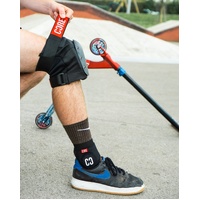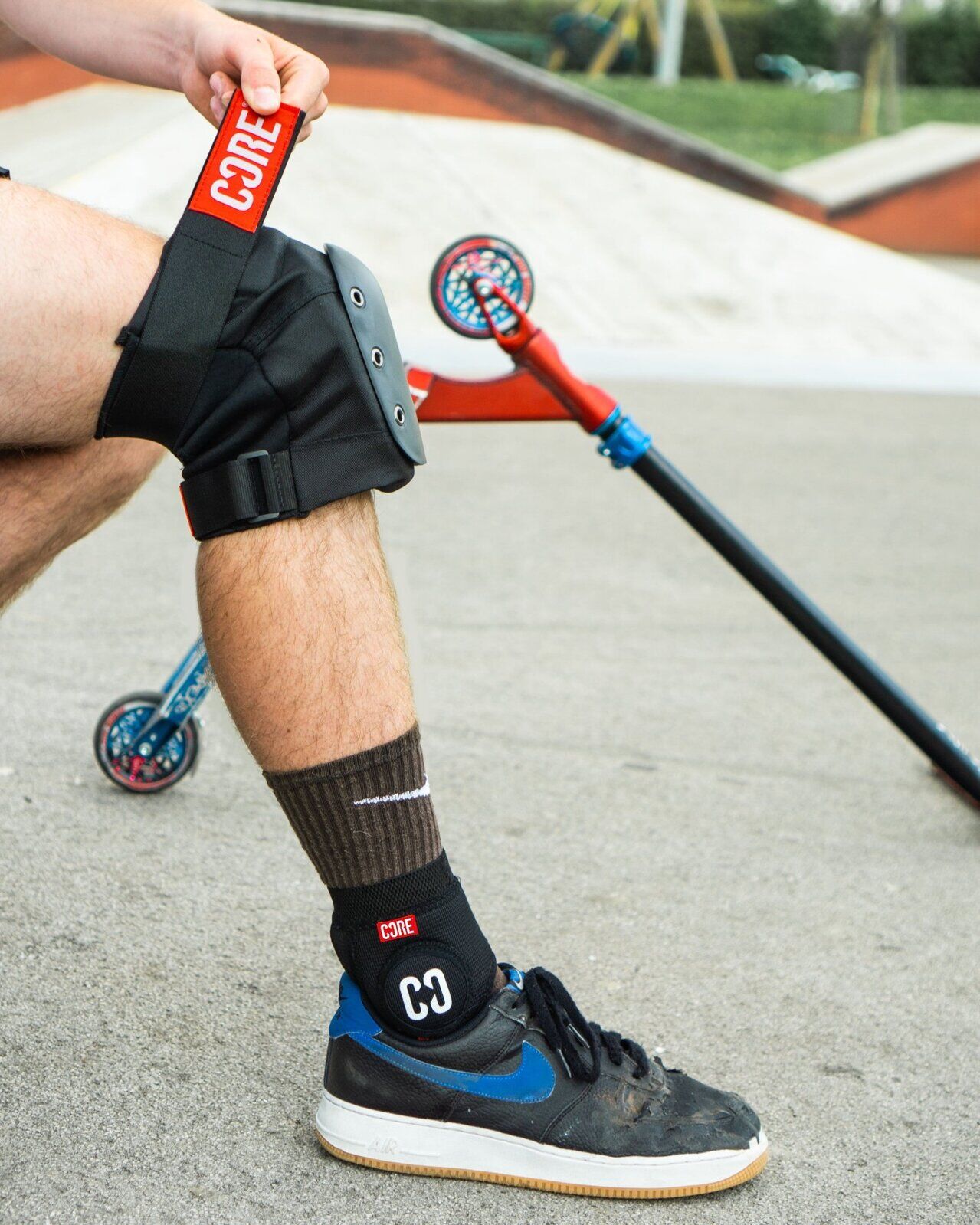 An essential product for any skatepark rider| the CORE Street Knee Pad! A pad that has been tried and tested by our pro team over the course of a year| you know this pad can handle whatever you throw at it! Coming in with 1/2″ of EVA foam perfectly foamed to both fit and mould around your knee| these pads will provide excellent comfort and fitting. These pads also feature spandex lined top strap for flexibility when fitting to accommodate all riders choice of tightness when using them. The pad itself is constructed of breathable neoprene for better ventilation and comfort. Also featuring a bottom fitted pull strap for extra comfortability and a hardened plastic cap you simply can’t go wrong with these pads.