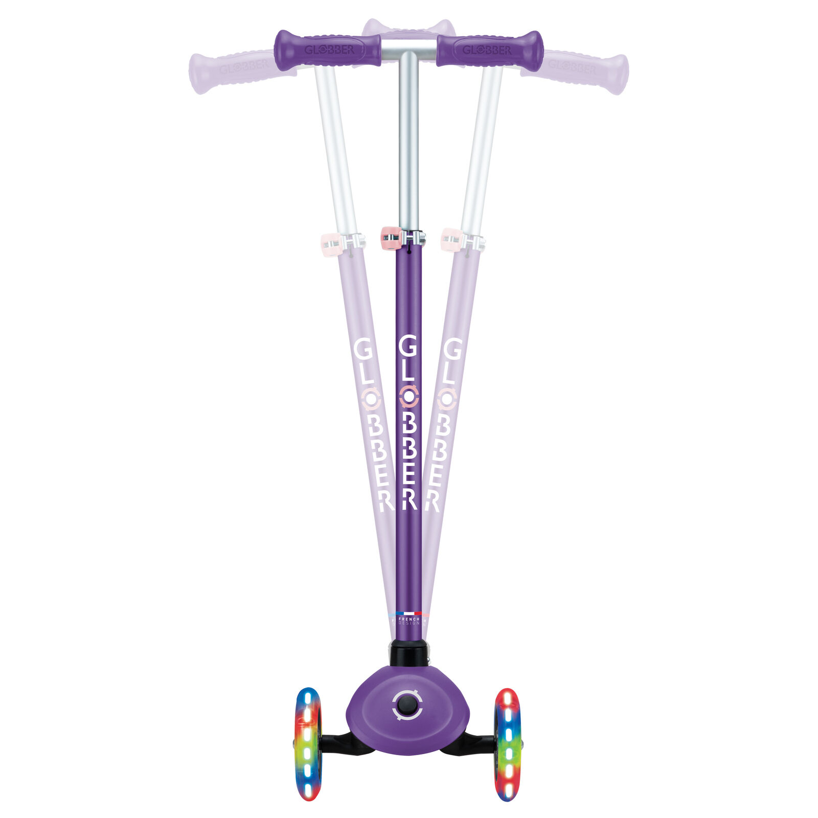 Globber PRIMO PLUS LIGHTS Kids 3 Wheel scooter - Purple/ Pastel Pink for kids 3y+