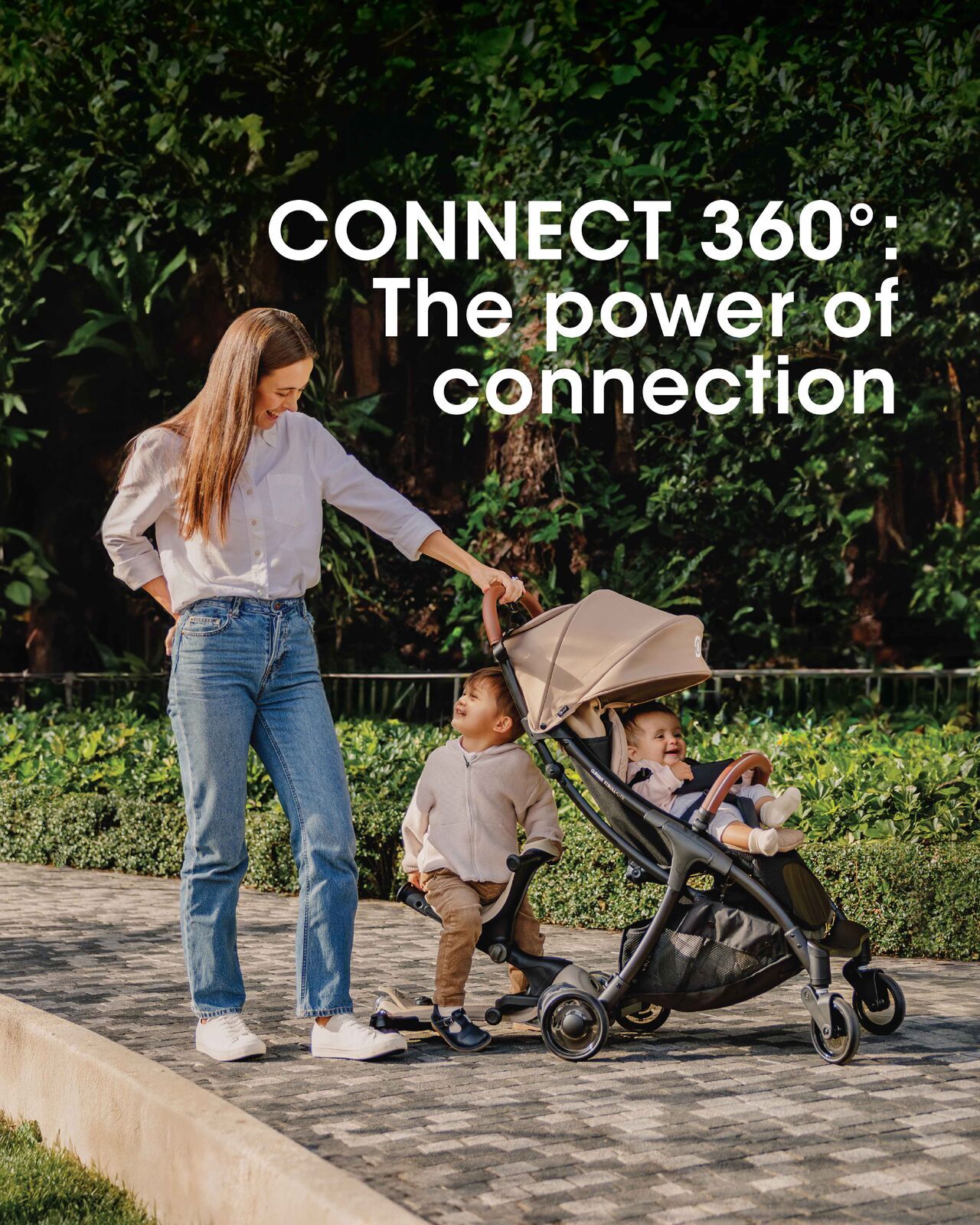 Packed with features| like a fast-folding system| 5-point safety harness| parking device| anti-UV canopy| 3-position reclinable seat| breathable fabric| ventilation windows| spacious storage| durable wheels| and more!. Connect with your toddler's GO•UP 360° for full family fun!